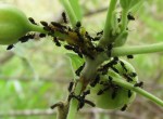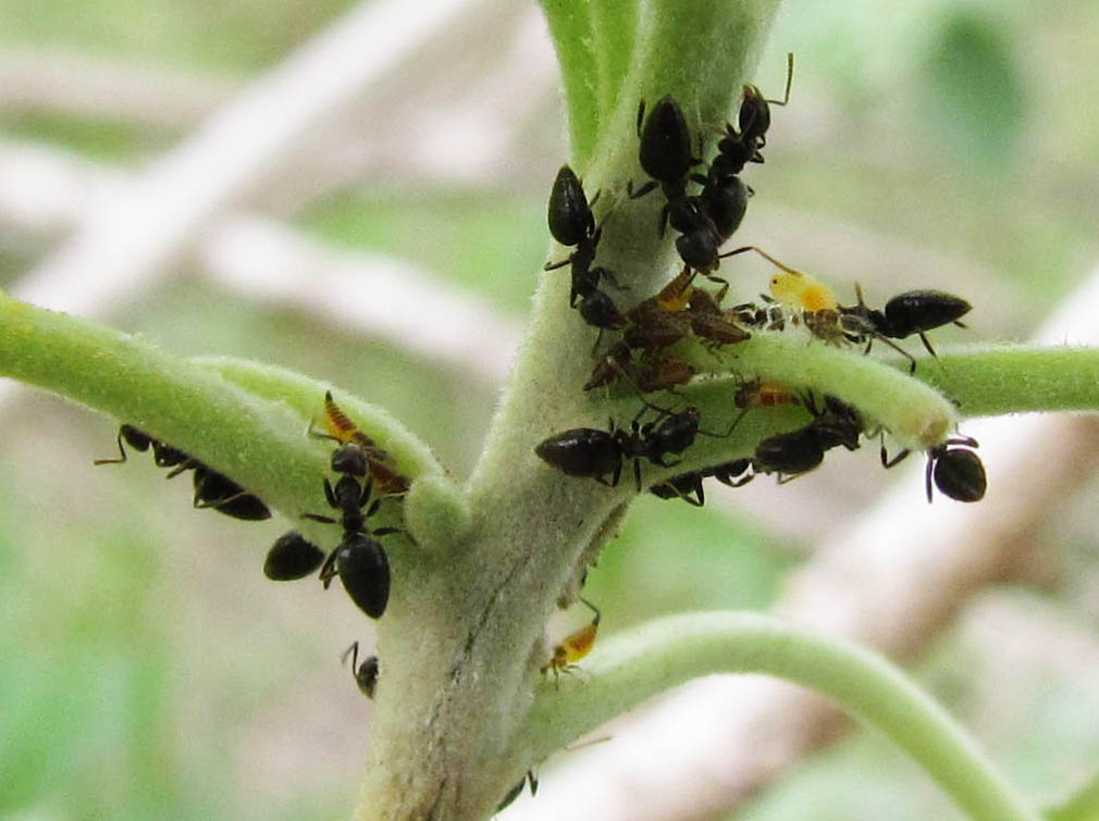 There are two areas within the Navy Radio Telecommunications Facility and Munitions Storage Area where federally listed endangered Abutilon menziesii occur. Every month we go out and check on them, and this month they were flowering. I also noticed some interesting insect damage: feeding on the leaves, which I believe is from the Chinese Rose Beetle, Adoretus sinicus, a bore hole in a flower bud, and ants tending some kind of Homoptera (I didn’t collect any of the ants but they look like the white footed ant, Technomyrmex difficilis – not sure about the Homoptera either, at first I thought aphids but now I am thinking leafhoppers ).