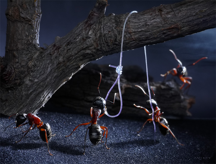 I discovered some more cool insect art today – I guess maybe you could call it “ant art.” Photographer/artist Andrey (Antrey) Pavlov from St Petersburg, Russia creates a window in into the secret life of the ants. Below are a few of my favorites, but you can find the gallery with the rest of his work here .