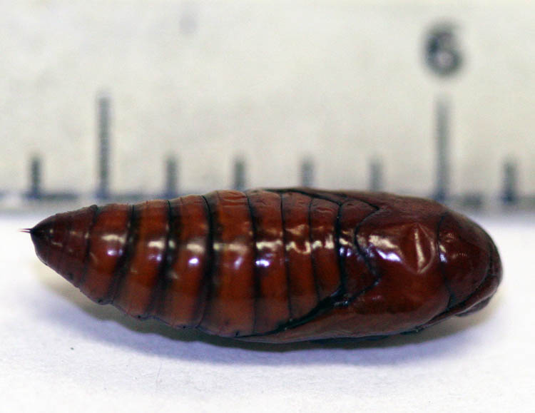 Thanks for looking at it Will – they did seem to spend a lot of time at the bottom of the cage and in the paper towel that I used to line the cage. Didn’t really see any signs of feeding on the Acacia confusa leaves, but the early instars definitely fed on the flowers. Looked like there was also some feeding on some of the early seed pods that were still green, although I wasn’t certain that the feeding hadn’t occurred prior to me putting the branches in the cage. Hopefully they will make it to adulthood, and in good enough condition that I can pin them out. Before I leave I’m going to separate all the pupae and place in idividual containers so when my coworkers notice they have emerged they can just throw them in the freezer. It will probably end up being a common alien species, but it has been fun taking care of them just the same – a nice diversion my normal routine at work (even though I have received some ridicule about having a bunch of caterpillars on my desk!).