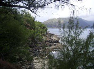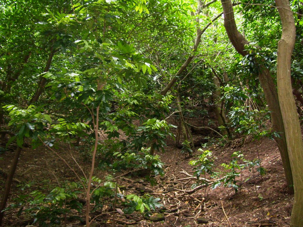 We had a late start today. Originally we were supposed to go back to the lake at 0730 to pick up our traps, but we were told that the ATVs had to be serviced, and that our trip to the lake was postponed until after lunch. It wasn’t really clear whether there was actually something wrong with the ATVs or whether they just decided to do a routine servicing of them that morning. Whatever the case, the ATVs were not available, so we decided to hike megapode transect #3. This transect begins at camp and heads south along the coast. It passes through mostly mixed forest, but there are some occassinal pockets of good native forest.